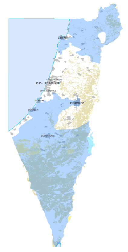 2. מחוזות ירושלים והמרכז: ירושלים, פרוזדור ירושלים, אזור שפלת יהודה ממערב לכביש מס' 1 עד אזור כפר דניאל (נ"צ 193220, 647768) רמלה, פתחיה, חולדה, יסודות, בית חלקיה, חפץ חיים, בני ראם, גפן, לוזית, מזרחית לבית ניר (לא כולל), דרומה לאזור נחושה ולאורך הקו הירוק לירושלים, כמתוחם במפה.