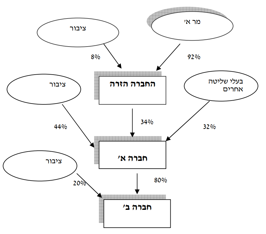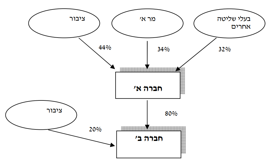 2. הזכויות בחברה א' מוחזקות על ידי מר א', שהינו מייסד החברה, בעלי שליטה אחרים וציבור.